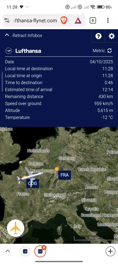4. Way back. The flight back from Charles de Gaulle airport to Frankfurt was uneventful. More and more it has become customary to have internet access during the flight.